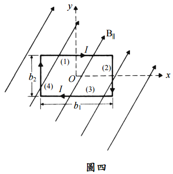 【已刪除】四、圖四所示為一位於x y平面上長方形迴線(rectangular loop),邊長各為b