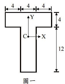 【已刪除】一、如圖一所示斷面,C 點為形心位置,尺寸的單位為 cm,試求斷面通過該形心的 X 軸及 Y 軸之面積慣性力矩 I