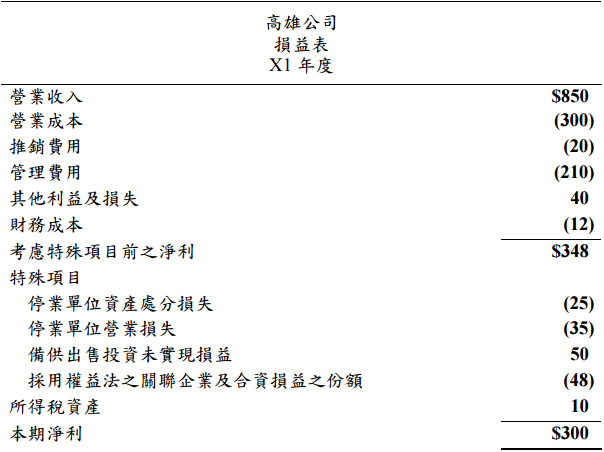 【已刪除】四、高雄公司 X1 年初剛成立,該年度損益表由一位經驗有限的新進會計人員編製如下: