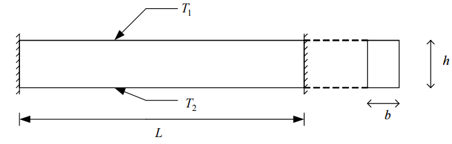 【已刪除】二、如圖所示之方形斷面梁(梁寬 b,梁深 h),梁長 L,梁之兩端均為固定端,梁之熱 膨脹係數為α ,彈性模數為 E。梁在受溫度作用,梁上表面承受之溫度提升為T