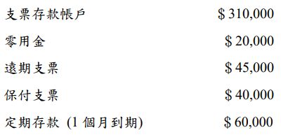 19. 統一公司於✖9 年 12 月 31 日之部分資料如下:統一公司✖9 年 12 月 31 日應報導之現金及約當現金金額為(A) $375,000 (B) $475,000 (C) $415,000 (D) $430,000