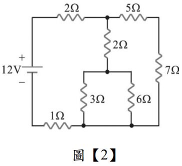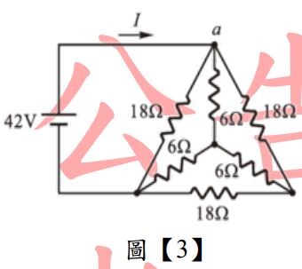 22. 如圖【2】所示之電路,則3Ω電阻消耗之功率為多少?(A)1.5W(B)3W(C)4.5W(D)6W