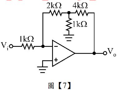 8. 如圖【7】所示之理想運算放大器電路,其電壓增益為________