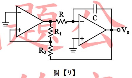 10. 如圖【9】,已知R₂=1kΩ,R₁=4kΩ,R=1kΩ,C=1µF,求輸出端V₀之頻率為__kHz。