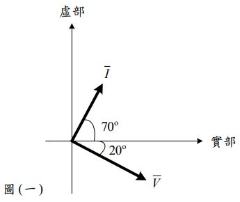 17.甲生作交流電路實驗時將一元件電壓-電流相量圖繪製如圖(一)所示,則此元件最可能是: