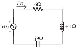 25. 如右圖所示電路,已知 v(t) = 100sin(1000t + 27°)V, i(t) = 10sin(1000t – 10°)A,阻抗 Z 為一電阻 R 與一未知元件 X 串聯,由此可求得: [台糖 110] (A)R 為 10Ω 之電阻 (B)X 是 167μF 的電容器 (C)X 是 6mH 的電感器 (D) 阻抗的功率因數為 0.8