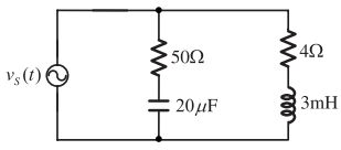 31. 如右圖所示電路,若 VS(t) = 141.4 sin(1000t)V ,下列敘述何者正確? [自來水 110] (A) 電感抗 XL= 3Ω (B) 電源為=200 ∠ 0°V (C) 總電流=17 – j11A (D) 電容抗 XC = 50Ω
