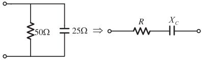 40. 如下圖所示交流電路,左圖為交流 RC 並聯電路,右圖為其等效串聯電路, R 及 XC 各為多少歐姆? [台糖 111] (A)R= 50Ω、XC = 25Ω (B)R= 25Ω、XC = 50Ω (C)R= 20Ω、XC = 10Ω (D)R= 10Ω、XC = 20Ω