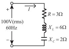 46. 如右圖所示電路,電路之總阻抗及消耗功率分別為多少? [自來水 111] (A)3Ω,800W (B)5Ω,1200W (C)7Ω,1600W (D)100Ω,