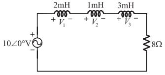 50. 如下圖所示之電路,若交流電源頻率為 300 Hz,且各電感之電壓為 Vi = ∣ Vi ∣∠ θi ,則∣ V1 ∣:∣ V2 ∣:∣ V3 ∣為多少? [鐵路特考 111] (A)5:10:3.3 (B)10:5:3.3 (C)1:1:1 (D)2:1:3