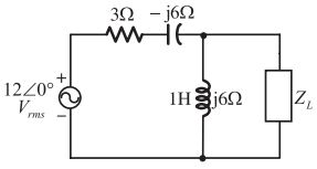 58. 如右圖所示,ZL 為何值才能得到最大功率 Pmax,且最大功率為多少? [台糖 112] (A)ZL=12 – j6Ω (B)ZL=12 + j6Ω(C)Pmax = 3W (D)Pmax = 12W
