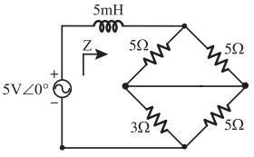 67. 如右圖所示之電路,跨接電源兩端之等效交流阻抗 Z 為 4.375 + j5Ω,則交流電源之頻率約為多少 Hz ? [鐵路、國安特考 112] (A)79.62 (B)159.24 (C)318.48 (D)1000