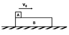 1.質量為m的木塊A,以水平初速v0自質量2m的靜止木塊B之左端向右運動,如圖所示,已知A、B之間的動摩擦係數為μ1,B與地面間的動摩擦係數為μ2,重力加速度量值為g。A、B恰達相對靜止時的共同速度量值為若干?