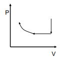 18.將一定量氦氣體視為理想氣體,在 1 升容器中做如下操作: (1)若體積不變,溫度由 67°C 降到 27°C,(2)然後壓力保持不變,溫度由 27°C 升高到 100°C,(3)最後溫度保持不變,而壓縮體積, 則此操作過程,壓力與體積關係下列何者表示最為適當(下圖皆未按比例繪製)? (A) (B) (C) (D)
