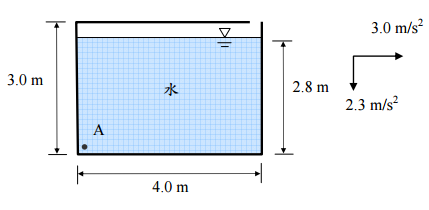 【已刪除】五、一個有開口的矩形蓄水箱(寬度 4.0 m,高度 3.0 m),水深 2.8 m,水的密度為 1000 kg/m
