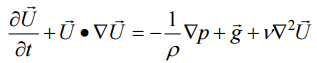 為重力加速度, p 為壓力,t 為時間,ρ 為密度,ν 為運動黏性係數(kinematic viscosity)。