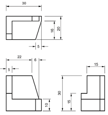 【已刪除】五、試依下列立體圖,繪出其三視圖,並標示尺寸。(20 分)