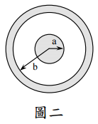 【已刪除】三、推導同軸電纜(如圖二)之單位長度電感值與單位長度電容值,證明此兩者的乘積等 於 µε,µ及ε分別為同軸電纜內外導體間之絕緣材料的 permeability 以及 permittivity。 (20 分)