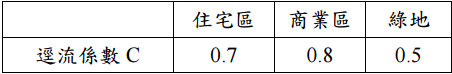 為綠地。 各地區的逕流係數如下表所示: