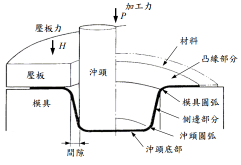【已刪除】四、如圖 1 之金屬板材深引伸加工(deep drawing),試說明變形各部分之應力狀態。 (20 分)