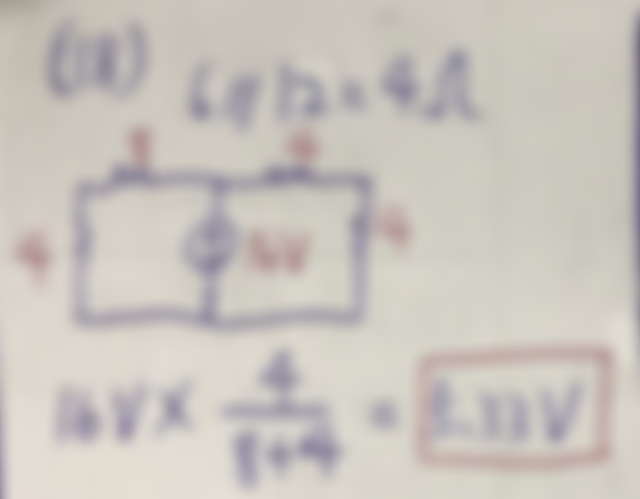 18 如圖所示之電路,求 6 歐姆(Ω)電阻上的跨壓約為多少伏特(V)?(A) 2.6 (B) 5.3 (C) 7.8 (D) 10.4