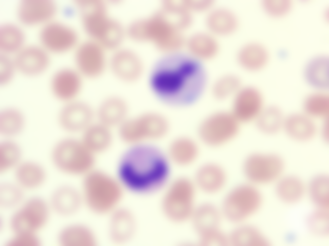 24.下圖為毒血症(toxemia)犬隻血球相,箭頭所指為何? (A)嗜中性球,Döhle bodies (B)嗜中性球,Heinz bodies (C)單核球,Döhle bodies (D)單核球,Heinz bodies