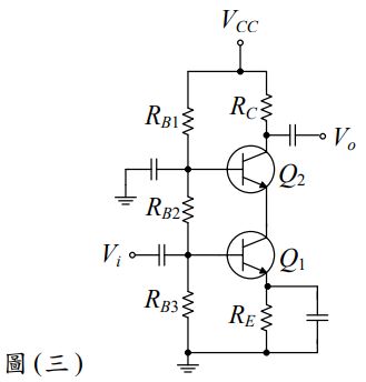 26.如圖(三)所示之BJT疊接放大器電路,下列敘述何者 錯誤 ?