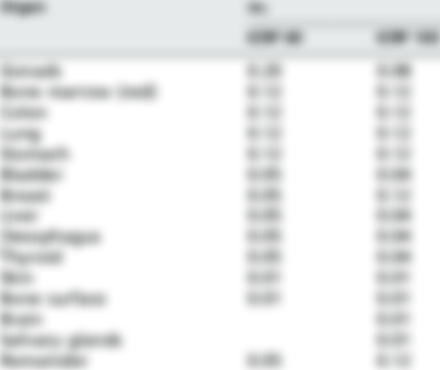 5. 請問乳腺在 ICRP 第 60 號與第 103 號報告的組織加權因數(tissue weighting factor)分別為 何?