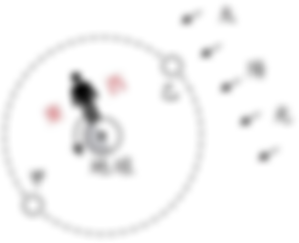 50. 圖(二十八)為地球與太陽光線相對關係示意圖,地球旁的箭頭表示地球自轉方向,黑點為北極,圓形虛線表示月球繞行地球的軌道,甲、乙分別代表兩個不同時間月球的位置。圖(二十九)是四種月相的示意圖。若在臺灣的小發某天下午6時左右於西方地平面附近看到了月亮,則下列何者較能說明當時月球的位置與他所看到的月相?