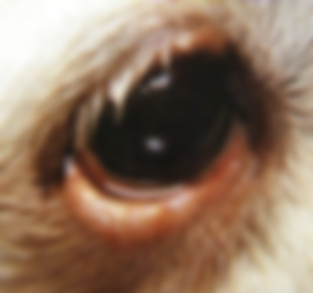 58.犬眼睛出現下圖病變之診斷為: (A)第三眼瞼腺體脫出 (B)第三眼瞼異位 (C)麥粒腫 (D)慢性鼻淚管化膿性肉芽腫