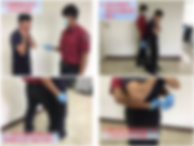 6. 爺爺吃湯圓時,不慎哽住且無法 說話,此時意識清楚,下列何者 為最合適的急救方法?