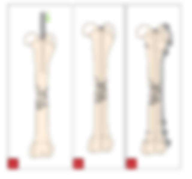 71.一隻10歲齡拉不拉多犬,股骨骨幹發生粉碎性骨折,會建議使用下列何種復位方法?