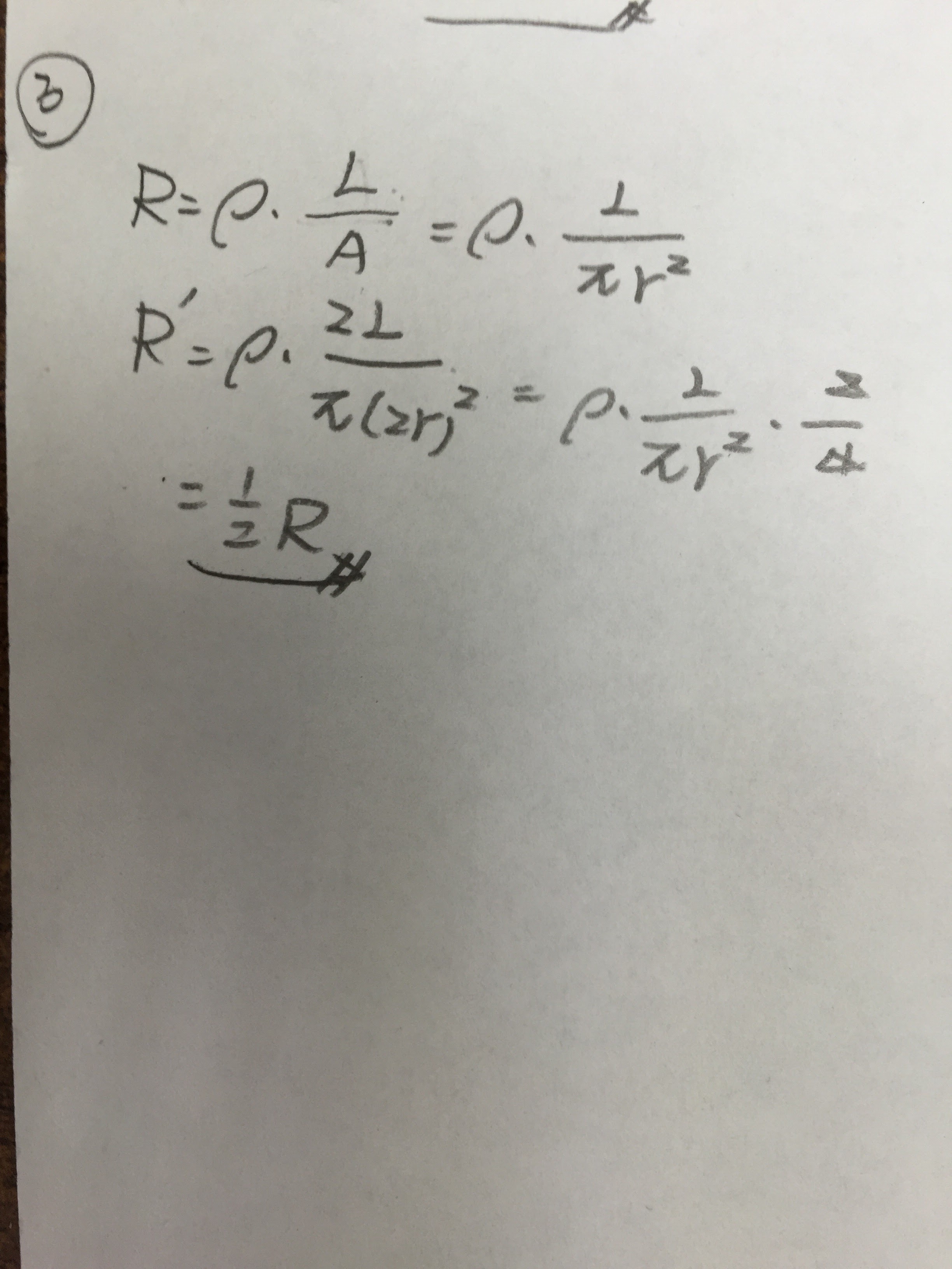 3.若將某一電線之直徑與長度皆改為原來之兩倍,試問更改後之電阻值為原來電阻值的 _______倍。